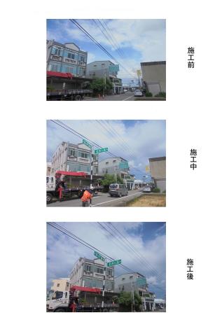 本工程於114年4月6日正式開工,工期為90日曆天,已於114年7月3日如期竣工,順利完成重劃區內老舊、破損及字體不清之道路指示牌更新作業。更新後之指示牌採用清晰字體與耐候材質,大幅提升道路辨識度,不僅方便居民日常通行,也有助於外地訪客與緊急救援車輛迅速定位。